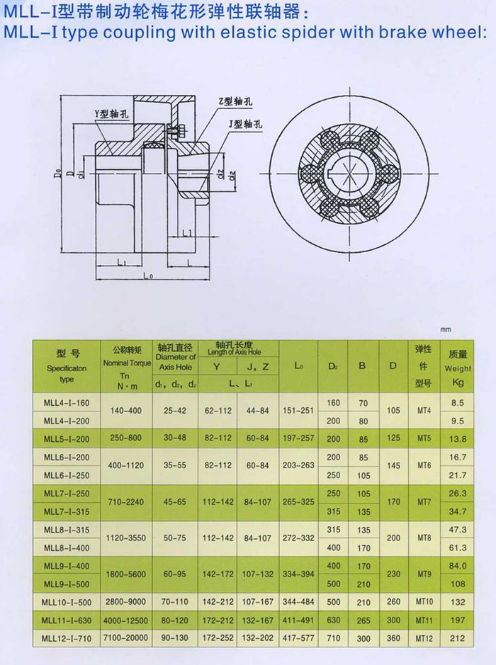 MLL-I型帶制動(dòng)輪型梅花形彈性聯(lián)軸器系列